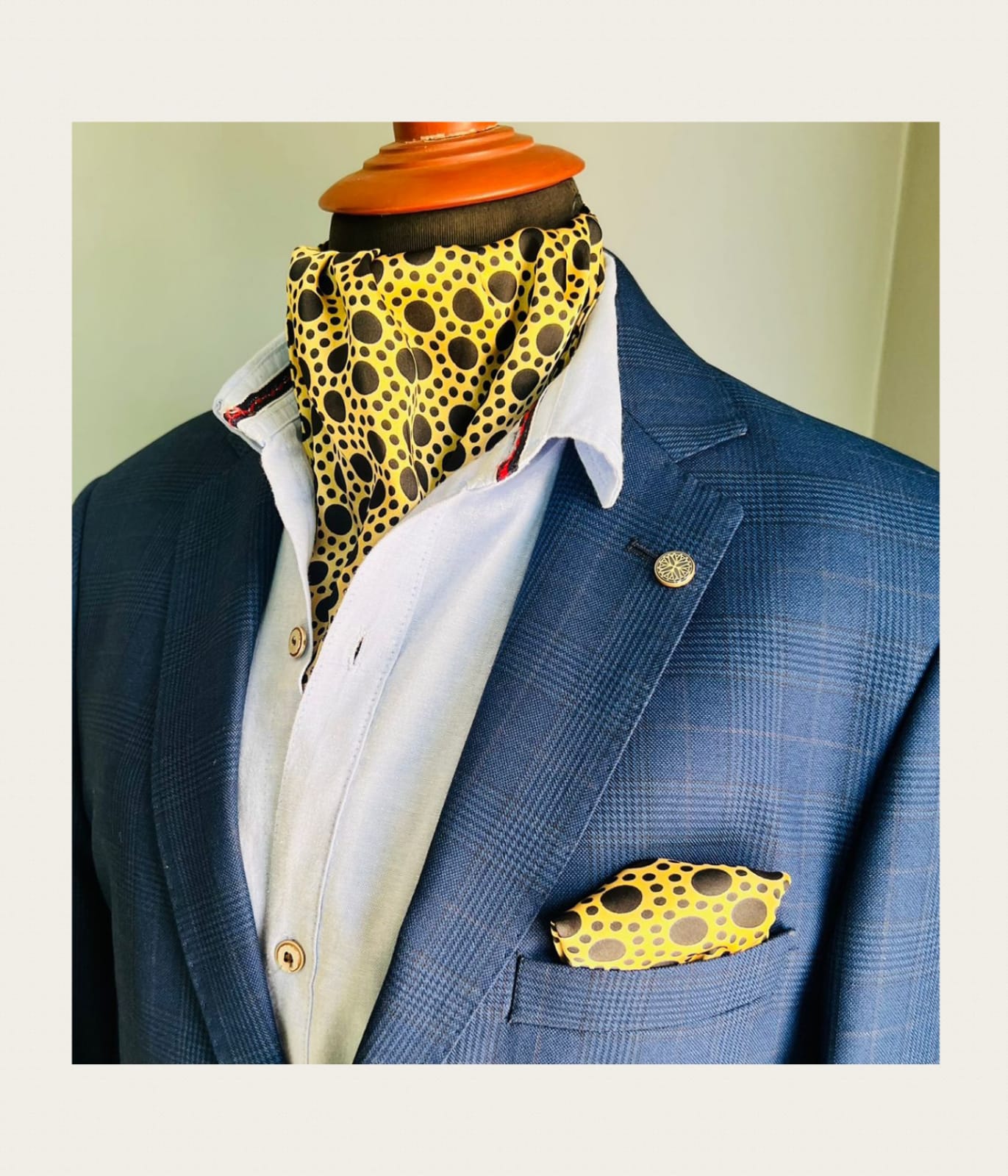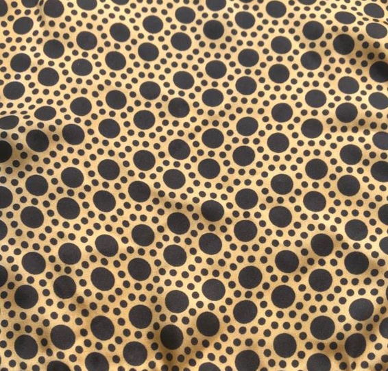 Black dotted print on a yellow base.