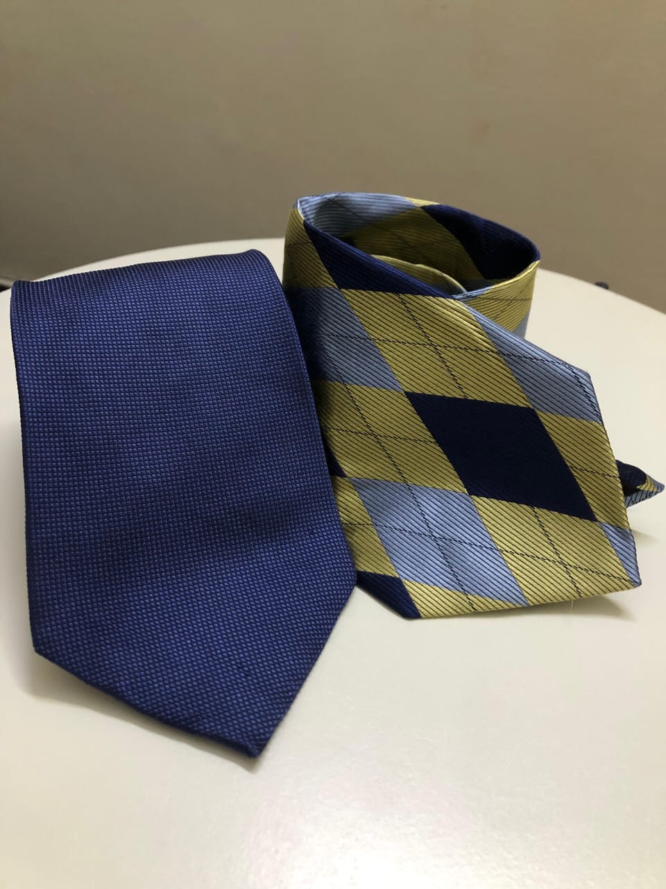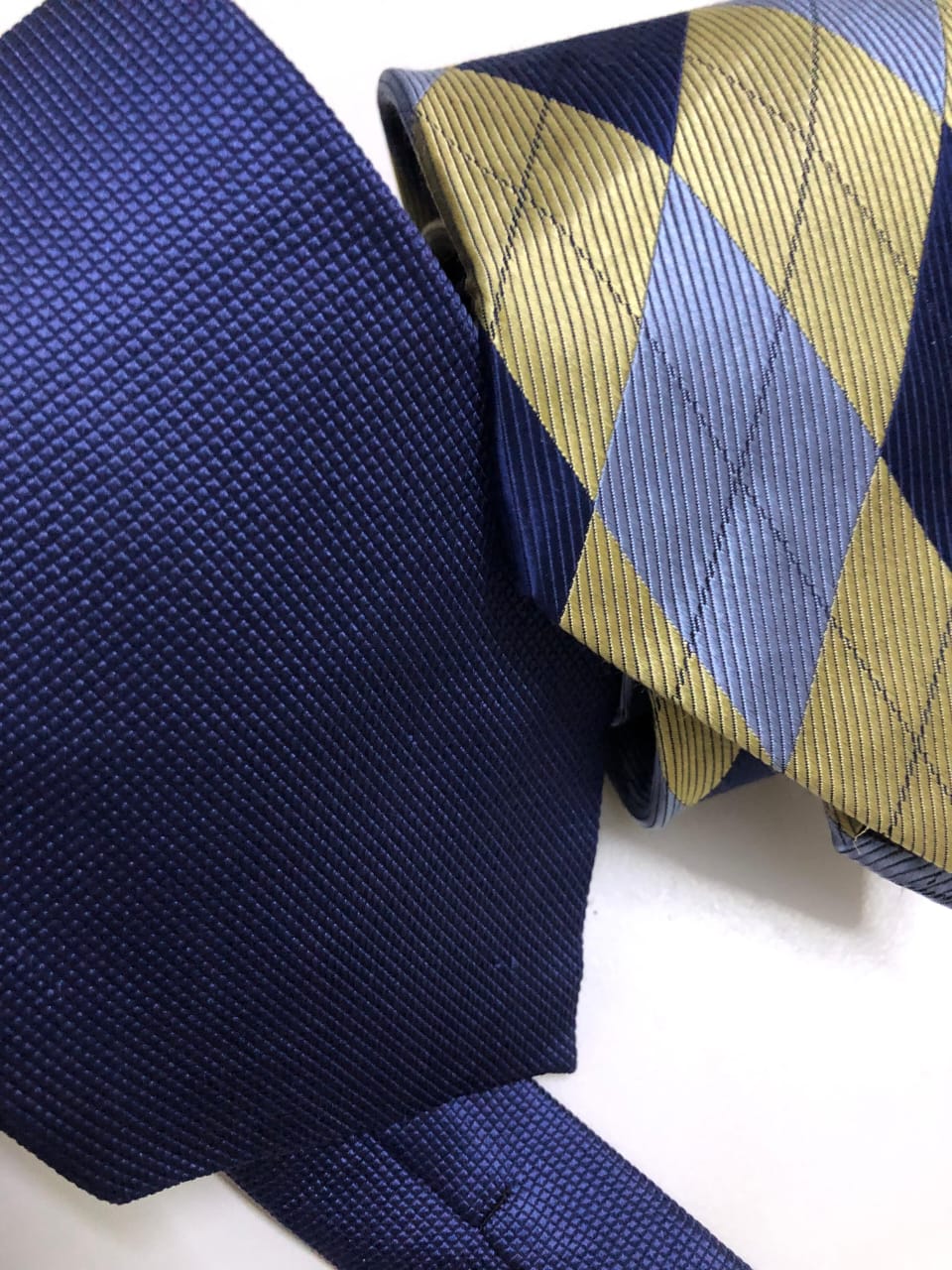 Set of two contrasting ties. Pixel blue with diamond blue patterrned tie.