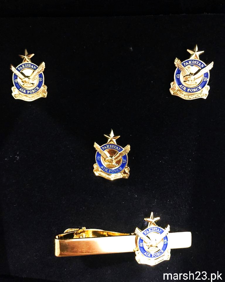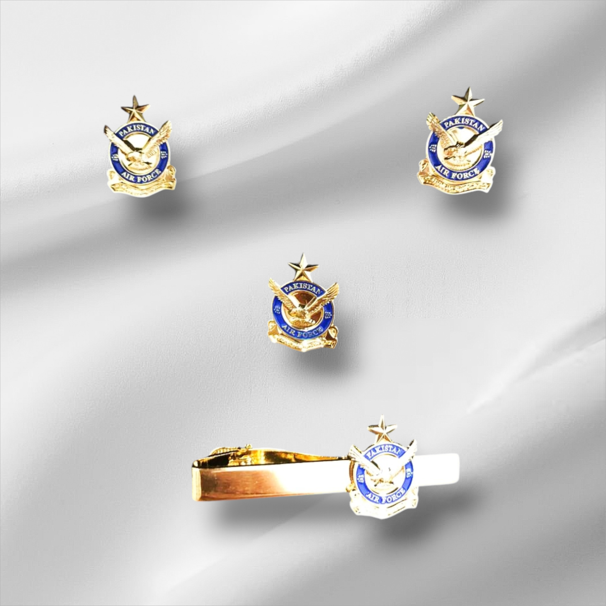 3D golden colored set. Size around 1 inch. All four pieces included. Magnetic cufflinks Box Included.